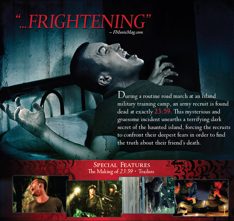 During a routine road march at an island military training camp, an army recruit is found dead at exactly 23:59. This mysterious and gruesome incident unearths a terrifying dark secret of the haunted island, forcing the recruits to confront their deepest fears in order to find the truth about their friend’s death.