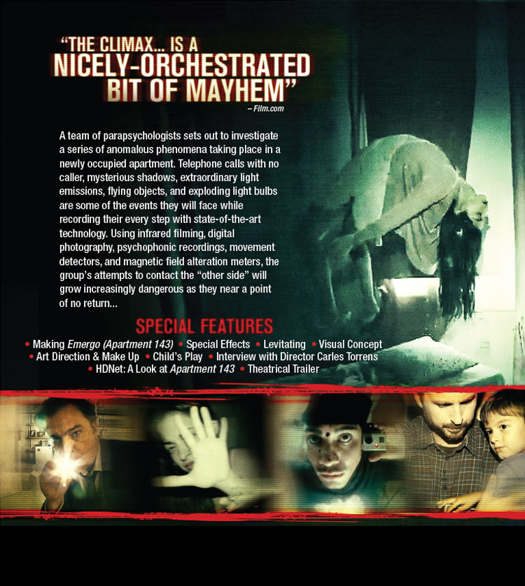 A team of parapsychologists sets out to investigate a series of anomalous phenomena taking place in a newly occupied apartment. Telephone calls with no caller, mysterious shadows, extraordinary light emissions, flying objects, and exploding light bulbs are some of the events they will face while recording their every step with state-of-the-art technology. Using infrared filming, digital photography, psychophonic recordings, movement detectors, and magnetic field alteration meters, the group’s attempts to contact the “other side” will grow increasingly dangerous as they near a point of no return...