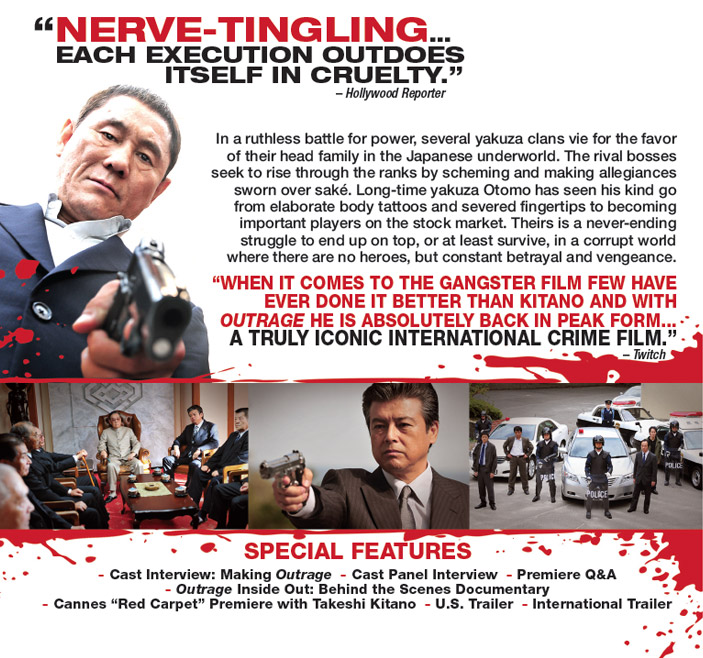 "WHEN IT COMES TO THE GANGSTER FILM FEW HAVE EVER DONE IT BETTER THAN KITANO AND WITH OUTRAGE HE IS ABSOLUTELY BACK IN PEAK FORM...A TRULY ICONIC INTERNATIONAL CRIME FILM."